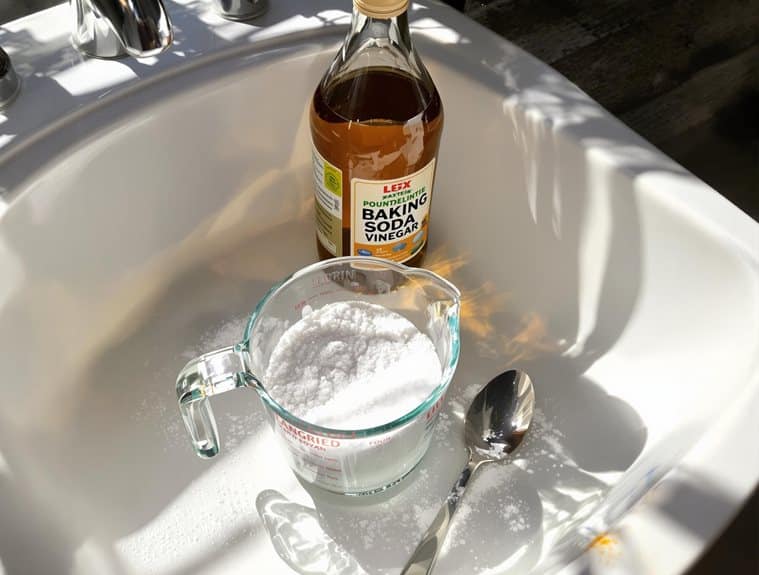 Der erste Schritt zur natürlichen Beseitigung eines verstopften Abflusses erfordert sorgfältige Vorbereitung und präzises Abmessen einer Tasse Backpulver. Diese grundlegende Komponente bietet mehrere Backpulver-Vorteile, einschließlich Fettabsorption, Geruchsneutralisierung und sanfter Reinigungswirkung, die Ihre Rohre nicht beschädigt. Die Verwendung genauer Messtipps garantiert maximale Wirksamkeit bei gleichzeitiger umweltfreundlicher Abflusspflege. Die Zugabe von Tafelsalz mit Backpulver kann die Reinigungskraft dieser natürlichen Lösung erhöhen.